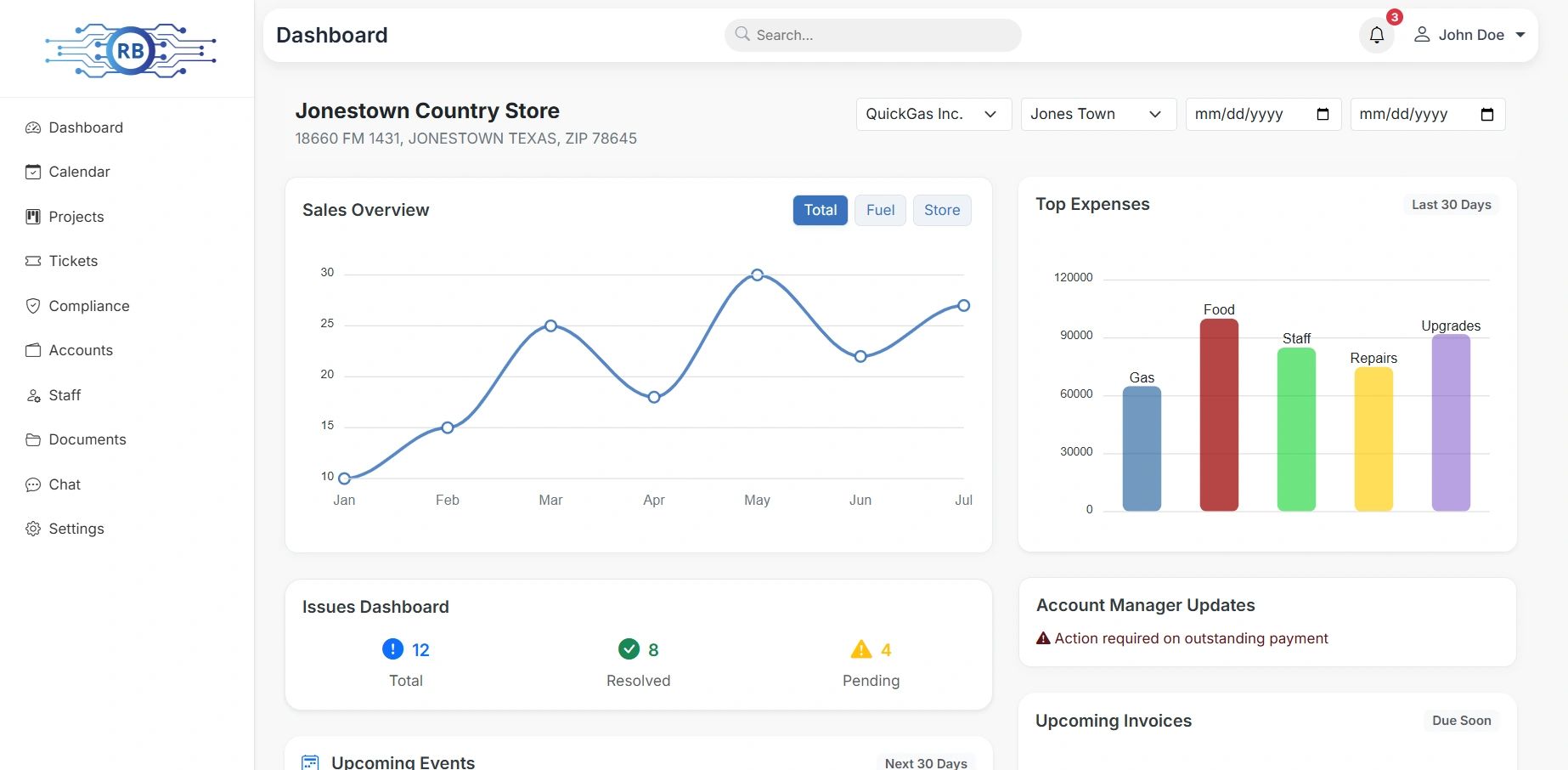 We take the hassle out of managing small & medium sized business including but not limited to convenience stores, gas stations, retail shops, property management, peer-to-peer car rentals, and more!